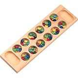 A simple game but not for the faint of heart. Also not for very young children as there are a lot of small pieces. I've played Mancala with a variety of different rules, and each new set of rules requires a different adaptation to win. Try to get all the marbles in your own bank, and steal the marbles from under your opponent's nose. No luck here. All skill.